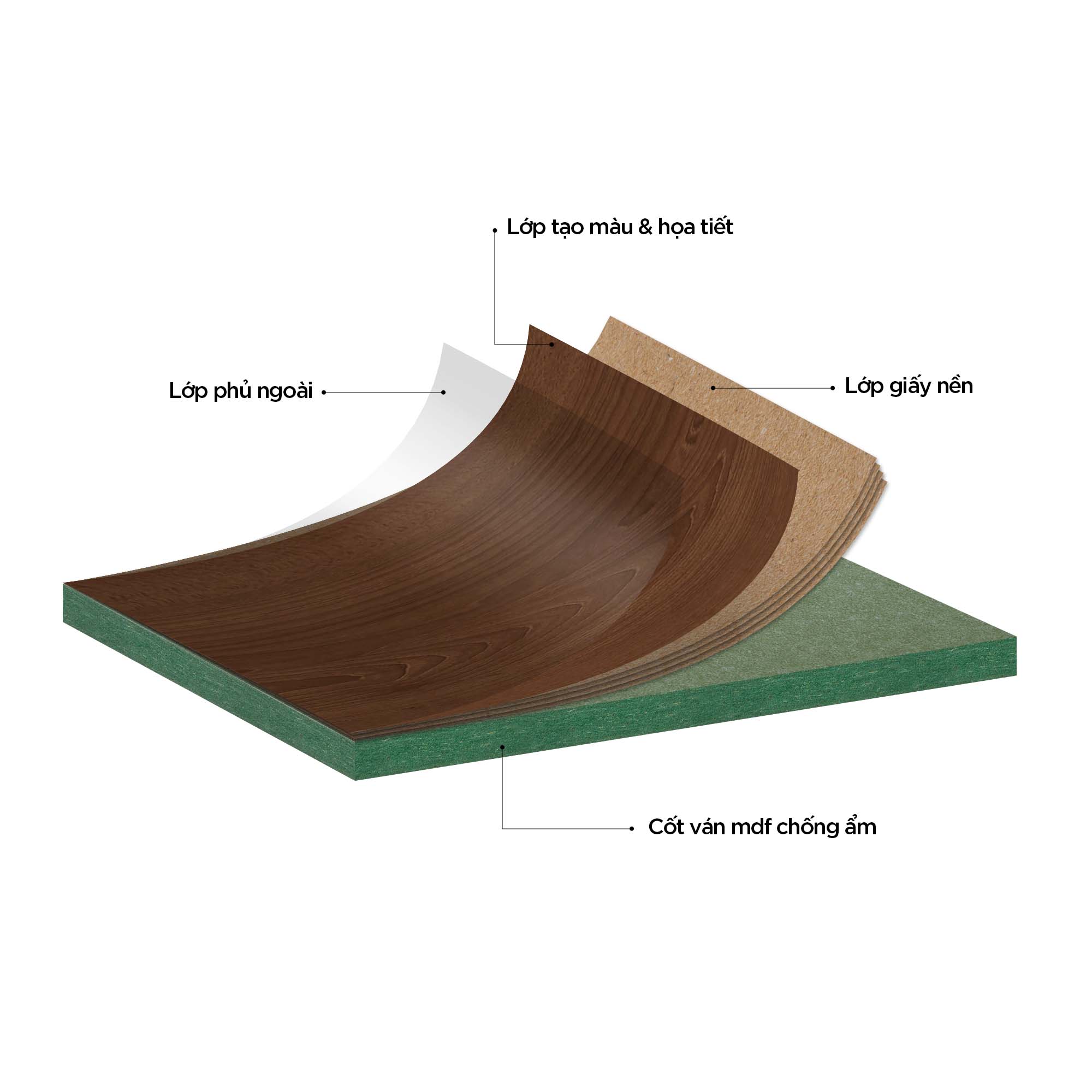 Ván MDF chống ẩm là loại gỗ được cấu tạo từ cốt gỗ MDF chất lượng cao, có khả năng chống ẩm tốt. Melamine là lớp phủ ngoài bề mặt MDF, mang tính thẩm mỹ cao và đa dạng màu sắc, bề mặt. MDF chống ẩm phủ melamine có độ bền cao, khả năng chịu nhiệt, chống ẩm và chịu lực tốt. Lớp phủ Melamine giúp cho bề mặt gỗ chống trầy xước, chống thấm nước và dễ dàng lau chùi.
